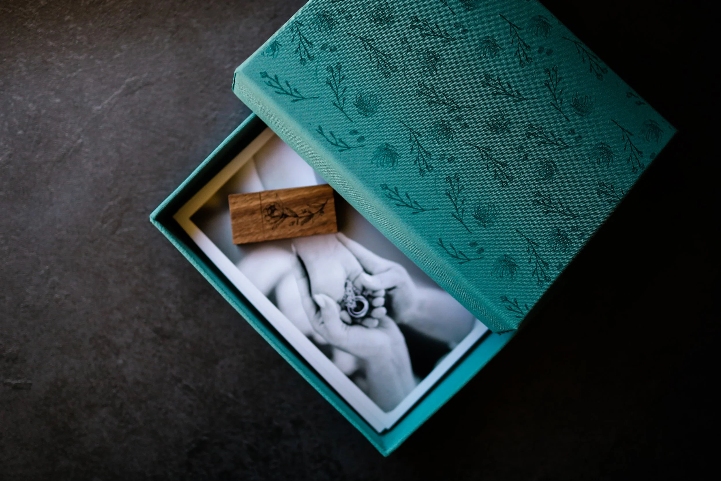 5”×7” linen print box, custom engraved with your text or with our signature native Australian flora design. This box is filled with 25 Fine Art Matt prints, sized 5”×7” with a straight edge.